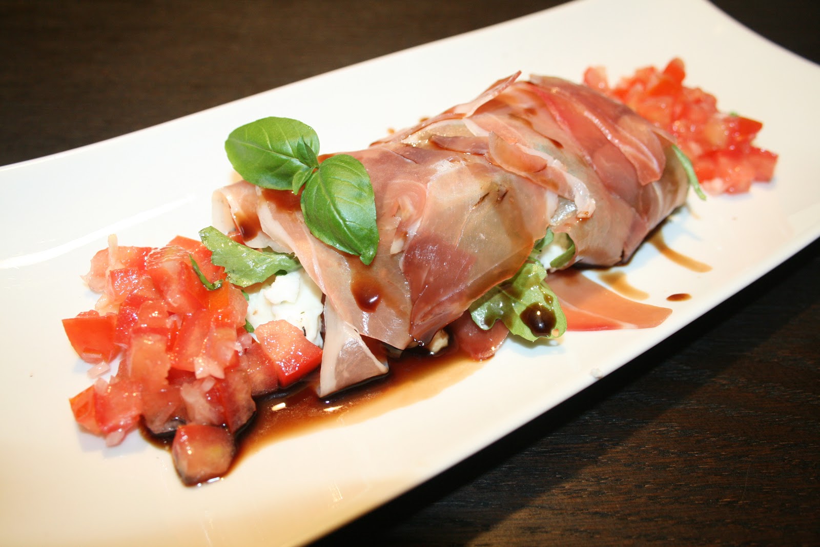 Werk af door hierover enkele streepjes balsamicocrème te trekken.
