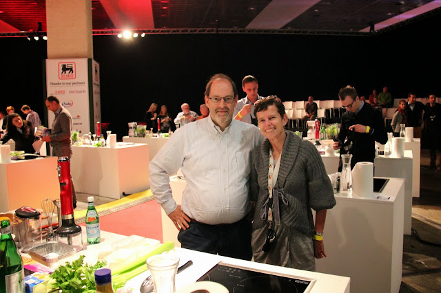 Doe je ogen dicht en stel je eens even het volgende voor. Je neemt een leeg Heizelpaleis. Daar plant je een groot podium in met aan weerszijden een giga beeldscherm. Voor dat podium stel je 100 kookeilanden op met op elk eiland 4 kookplaten, een Kitchen Aid foodprocessor, een Kitchen Aid staafmixer, kommen, pannen, messen, snijplank, servies, bestek,… kortom een volledig ingericht en uitgerust minikeukentje. Aan weerszijden van de kookeilanden maak je een muur met ovens. Veel ovens. Alles wordt genummerd: de eilandjes, de ovens,…